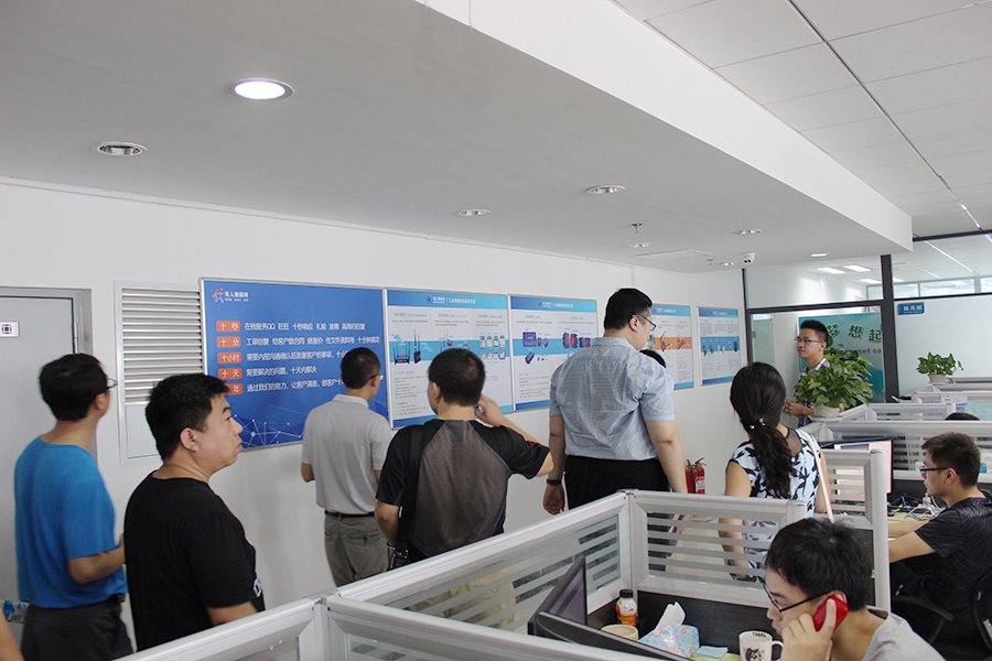 從公司的營銷部,市場部,技術部一路走來,古總熱情的為師生們介紹了有人物聯(lián)網(wǎng)的組織架構以及員工風貌,當駐足公司的文化墻時,師生們對有人物聯(lián)網(wǎng)的企業(yè)文化產(chǎn)生了濃厚的興趣。