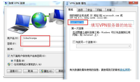 第三,設(shè)置VPN服務(wù)器地址。在連接框中,點(diǎn)擊“屬性”按鈕,在彈出的選項(xiàng)中設(shè)置VPN服務(wù)器的地址,在安全選項(xiàng)中選擇 “PPTP 協(xié)議”,然后輸入用戶名,密碼等。