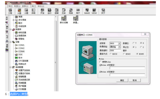 第三,選擇組態(tài)王與PLC通信波特率和選擇PLC類型。