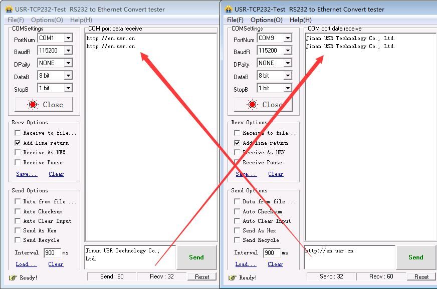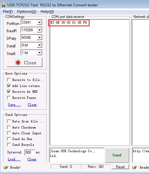 第九,用串口調(diào)試軟件進(jìn)行測(cè)試,設(shè)置正確后,數(shù)據(jù)能夠點(diǎn)對(duì)點(diǎn)雙向傳輸。