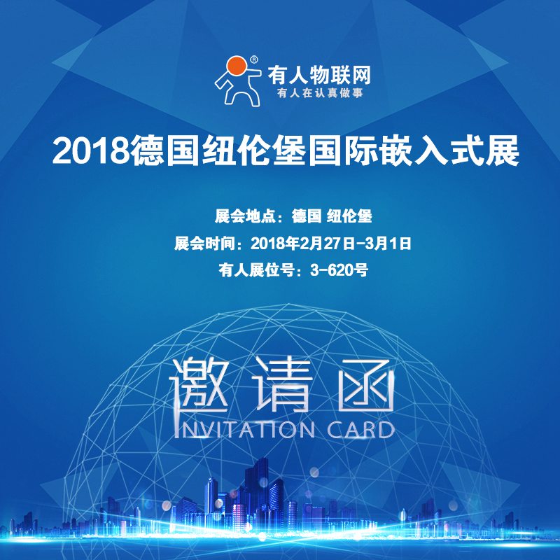 2018年2月27日,德國(guó)紐倫堡嵌入式自動(dòng)化展將盛大開(kāi)幕。本屆展會(huì)是嵌入式體系業(yè)界重要的年度盛會(huì)之一,也是全球規(guī)劃最大的嵌入式展會(huì),是嵌入式職業(yè)經(jīng)濟(jì)發(fā)展和歐盟工業(yè)發(fā)展趨勢(shì)的晴雨表。有人科技作為嵌入式通訊領(lǐng)域?qū)<遥貙⑶巴鶉?guó)際性嵌入展覽會(huì),展示嵌入式設(shè)備和體系領(lǐng)域的最新成功研制結(jié)果。