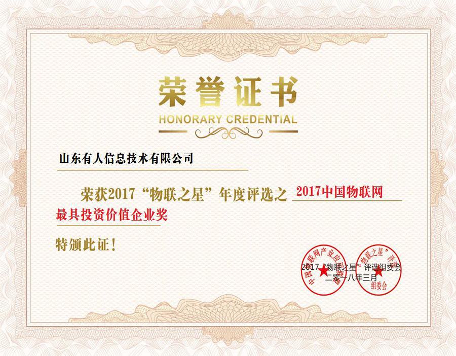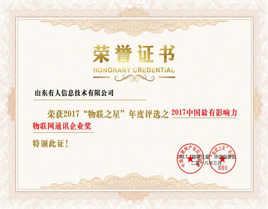 2018年3月19日,“2017物聯(lián)之星-中國物聯(lián)網(wǎng)產(chǎn)業(yè)年度評選”結(jié)果正式揭曉。有人物聯(lián)網(wǎng)憑借自身強(qiáng)勁的綜合實(shí)力得到500位物聯(lián)網(wǎng)專家的認(rèn)可,并最終從300多家物聯(lián)網(wǎng)企業(yè)中脫穎而出,一舉斬獲“2017中國最有影響力物聯(lián)網(wǎng)通訊企業(yè)獎”、“2017中國物聯(lián)網(wǎng)最具投資價(jià)值企業(yè)獎”兩大重磅獎項(xiàng)。