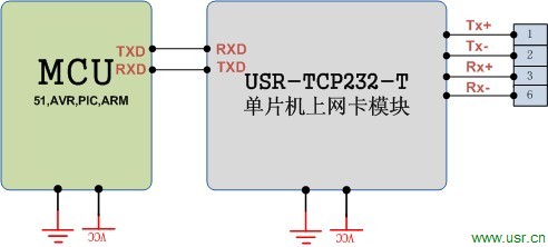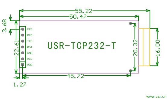 請一定注意 USR-TCP232-T模塊的插針引腳是TTL電平,不要和232電平的設備進行直接連接,否則會燒壞模塊。