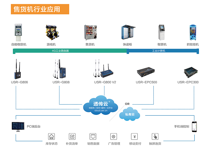 售貨機作為時下常見的消費終端,廣受運營商與消費者青睞。作為商品售賣的途徑之一,通過支付寶/微信進行支付消費,售貨機成為解決線上消費和線下體驗的核心樞紐。有人物聯(lián)網(wǎng)通過Wi-Fi/NB-IoT/GPRS/LTE等物聯(lián)網(wǎng)技術(shù),將售貨機與云端后臺連接在一起,通過遠程方式控制售貨機,帶給用戶極致購物體驗。
