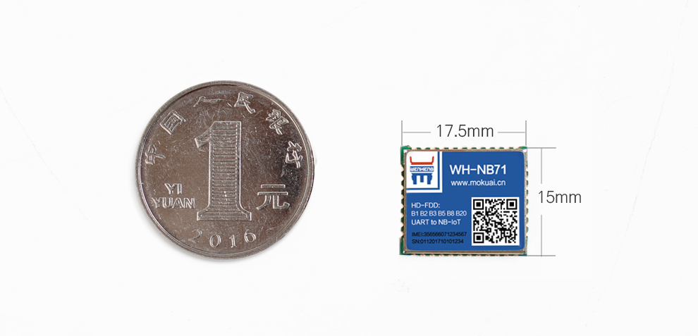 有些眼尖的童鞋可能發(fā)現(xiàn)了,它跟今天微信頭條的WH-NB73啥關(guān)系啊?沒錯(cuò),他們是一家子,都是有人物聯(lián)網(wǎng)旗下模塊子公司上海穩(wěn)恒科技的模組品牌。這是一款高性能、低功耗的NB-IoT通訊模組,支持B1/B3/B5/B8/B20頻段,超小尺寸封裝,全網(wǎng)通、全球范圍通用;支持CoAP透?jìng)鞴δ埽С諸CP/UDP;可接入透?jìng)髟?、電信云等云平臺(tái),方便用戶設(shè)備更好傳輸。