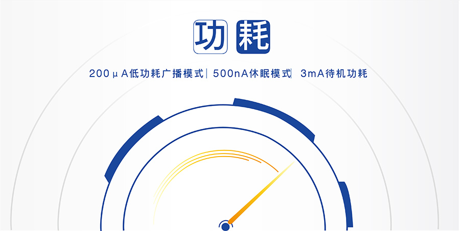 200uA低功耗廣播模式,500nA休眠模式,3mA待機(jī)功耗,支持低功耗多種喚醒方式。