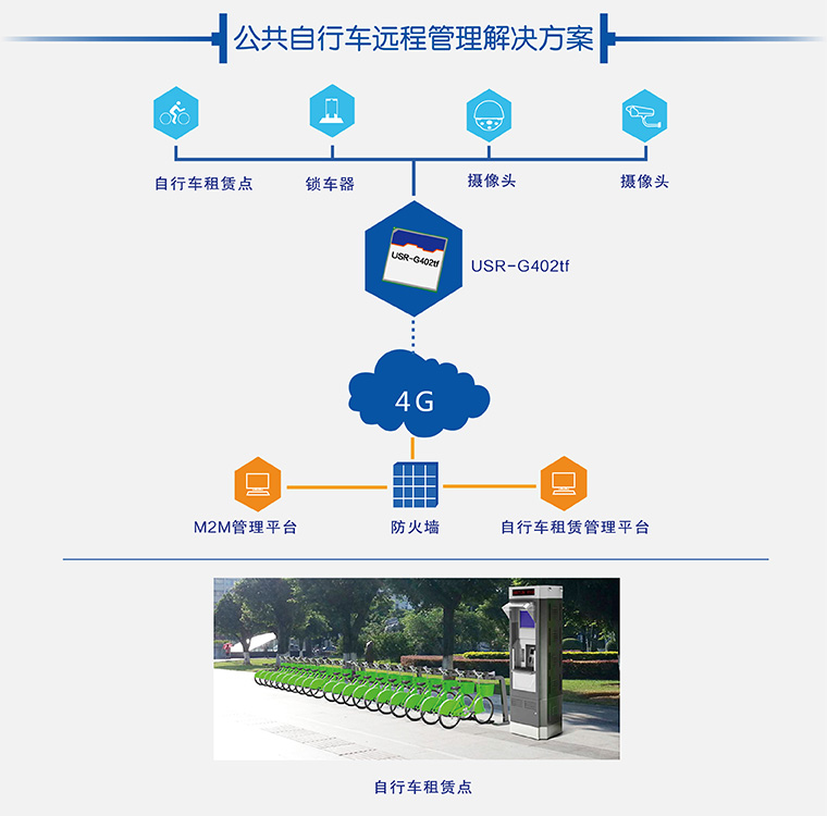 針對(duì)城市公共自行車分布分散,維修安全等問題,采用4G模塊實(shí)現(xiàn)租賃點(diǎn)實(shí)時(shí)聯(lián)網(wǎng),對(duì)自行車樁位狀態(tài)和存/取車信息實(shí)時(shí)傳輸,提升了自行車租賃點(diǎn)規(guī)模與時(shí)效管理,提高服務(wù)質(zhì)量。