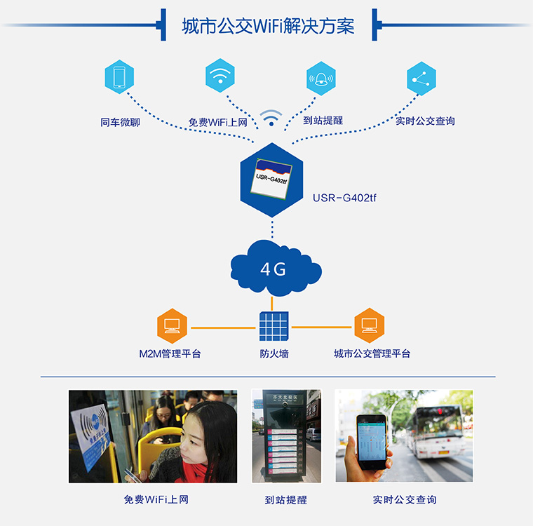 利用4G模塊聯(lián)網(wǎng)使公交車完全智能化,讓乘客輕松實(shí)現(xiàn)wifi聯(lián)網(wǎng),隨時(shí)查詢公交出行到站信息,節(jié)約乘客時(shí)間,方便出行,更好的提升城市形象。