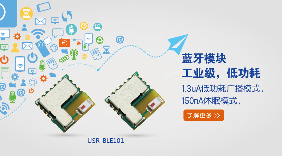 USR-BLE101是一款支持藍(lán)牙v4.1 BLE協(xié)議(兼容v4.0)的低功耗ble模塊,通過該模塊可以使傳統(tǒng)的串口設(shè)備或者M(jìn)CU控制的設(shè)備進(jìn)行無線的數(shù)據(jù)傳輸。