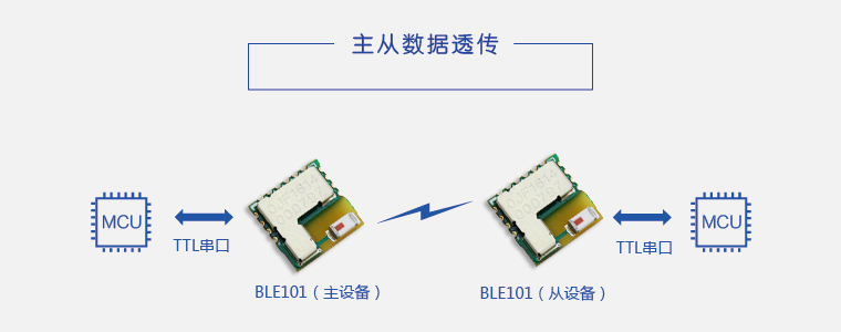 該藍(lán)牙模塊主從一體(默認(rèn)從模式),可以使用一主一從的方式進(jìn)行數(shù)據(jù)透?jìng)鳌?/p>