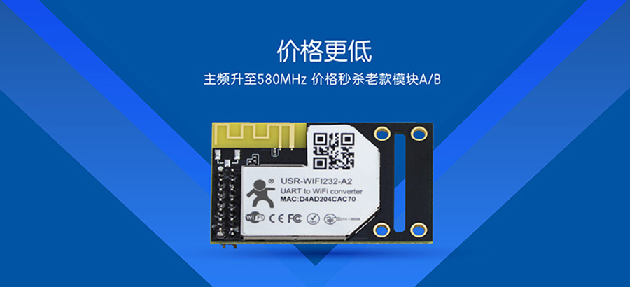 串口轉(zhuǎn)WIFI模塊A2/B2采用新方案,主頻升級至580MHz,F(xiàn)lash提升至2MB。