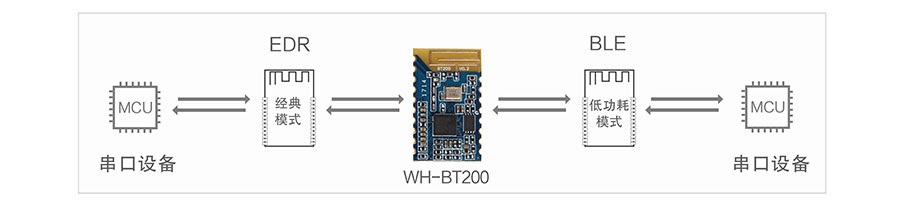 在該模式下,BT200可以實現(xiàn)經(jīng)典藍(lán)牙設(shè)備與低功耗藍(lán)牙設(shè)備之間相互通信。