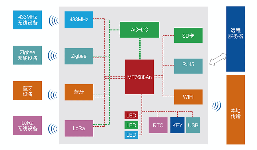 1、硬件實現(xiàn)各類主流無線技術(shù)向網(wǎng)絡(luò)的雙向數(shù)據(jù)轉(zhuǎn)換