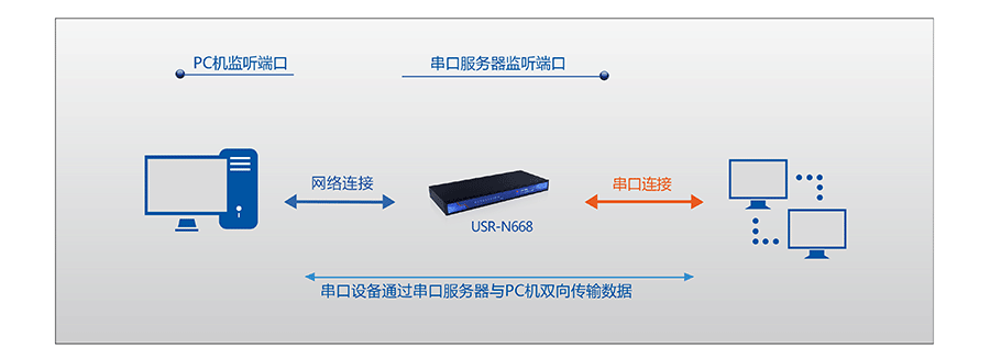 串口服務器同時監(jiān)聽端口,將所有接收的數(shù)據(jù)轉發(fā)給串口設備。