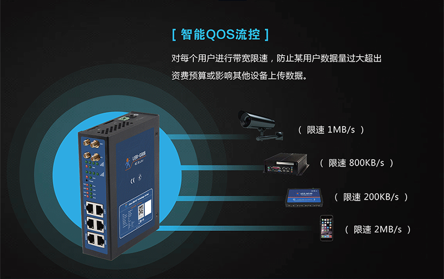 雙卡4G工業(yè)無線路由器支持QOS管理服務,設(shè)置設(shè)備優(yōu)先級及設(shè)備、應用程序?qū)拵拗?,各種聯(lián)網(wǎng)服務器管理更輕松。