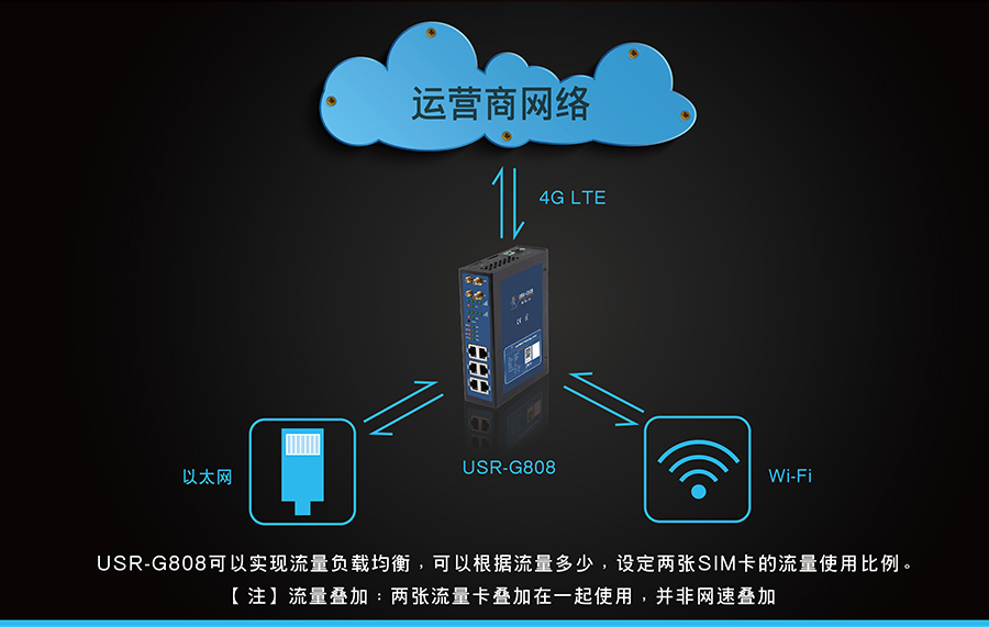 USR-G808是一款雙卡雙模式的4G工業(yè)無線路由器,可以實現(xiàn)更高效的戶外聯(lián)網(wǎng)功能。可實現(xiàn)雙模式或不同運營商同時在線,多網(wǎng)模式智能切換,保證通信鏈路切換備份,防止掉線。不僅可以再有線與無線間隨時切換,同時支持VPN專網(wǎng)/VPDN,也可以在全網(wǎng)通模式下實現(xiàn)高要求聯(lián)網(wǎng),適用于智能停車場、工控聯(lián)網(wǎng)、環(huán)保檢測、智慧農(nóng)業(yè)等對速率要求較高的項目。