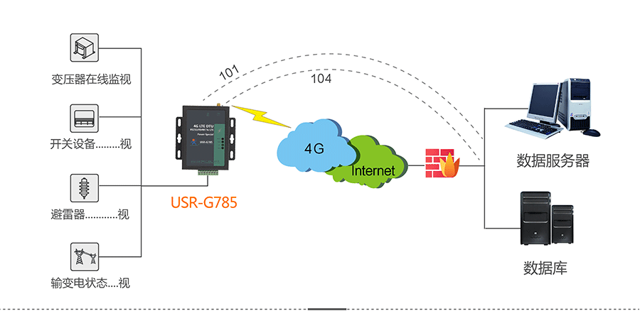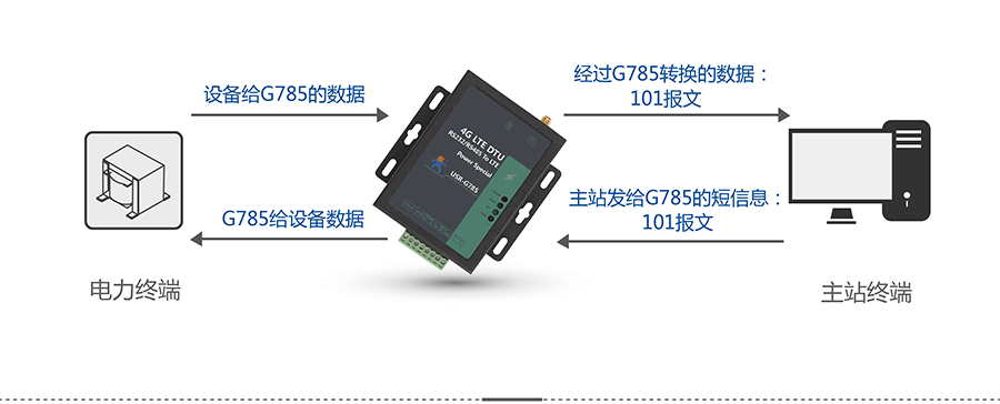 按照電力101協(xié)議傳輸數(shù)據(jù),DTU作為子站端的一部分,只需將數(shù)據(jù)通過串口發(fā)給DTU,USR-G785就會將101報文發(fā)送給服務(wù)器。