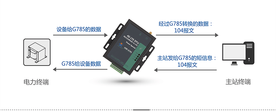按照電力104協(xié)議傳輸數(shù)據(jù),DTU作為子站端的一部分,只需將數(shù)據(jù)通過串口發(fā)給DTU,USR-G785就會將104報文發(fā)送給服務(wù)器。
