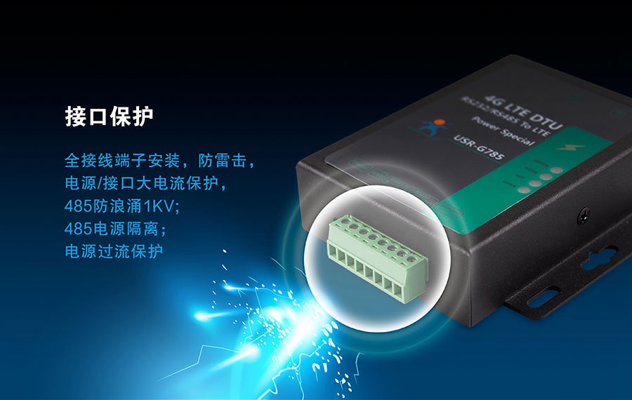 USR-G785 是一款高穩(wěn)定、抗干擾的工業(yè)級無線數(shù)據(jù)傳輸終端,專為電力行業(yè)設計,為苛刻環(huán)境下無人值守的電力項目,提供穩(wěn)定的網(wǎng)絡通信。既可以實現(xiàn)常規(guī) DTU 的數(shù)據(jù)透傳功能,也可以實現(xiàn)電力專屬協(xié)議透傳功能。通過簡單的 AT指令進行設置,即可輕松使用本產(chǎn)品實現(xiàn)串口到網(wǎng)絡服務器的雙向數(shù)據(jù)傳輸。