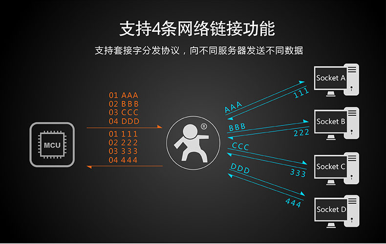 支持通過(guò)協(xié)議向不同Socket發(fā)送數(shù)據(jù)