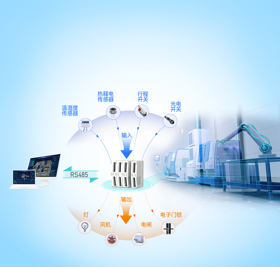 自動(dòng)化產(chǎn)線改造:將IO控制器接入自動(dòng)化產(chǎn)線設(shè)備,通過(guò)RS485采集、