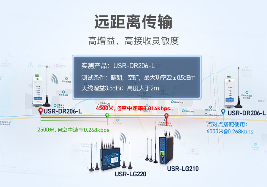點(diǎn)對(duì)點(diǎn):大于6000m@0.268Kbps