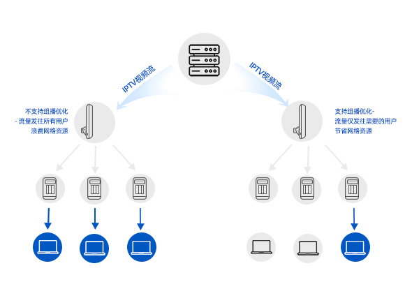 支持組播優(yōu)化 組播優(yōu)化功能讓組播流量僅發(fā)往有需要的終端,避免網(wǎng)絡(luò)資源的浪費(fèi)