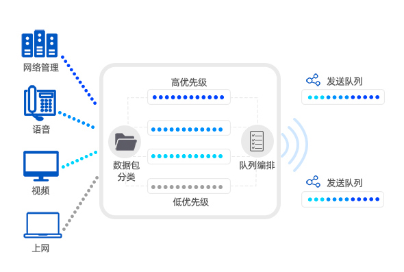 - 為不同業(yè)務(wù)提供4個(gè)隊(duì)列的優(yōu)先級(jí)(盡力服務(wù)、背景、視頻、語音)