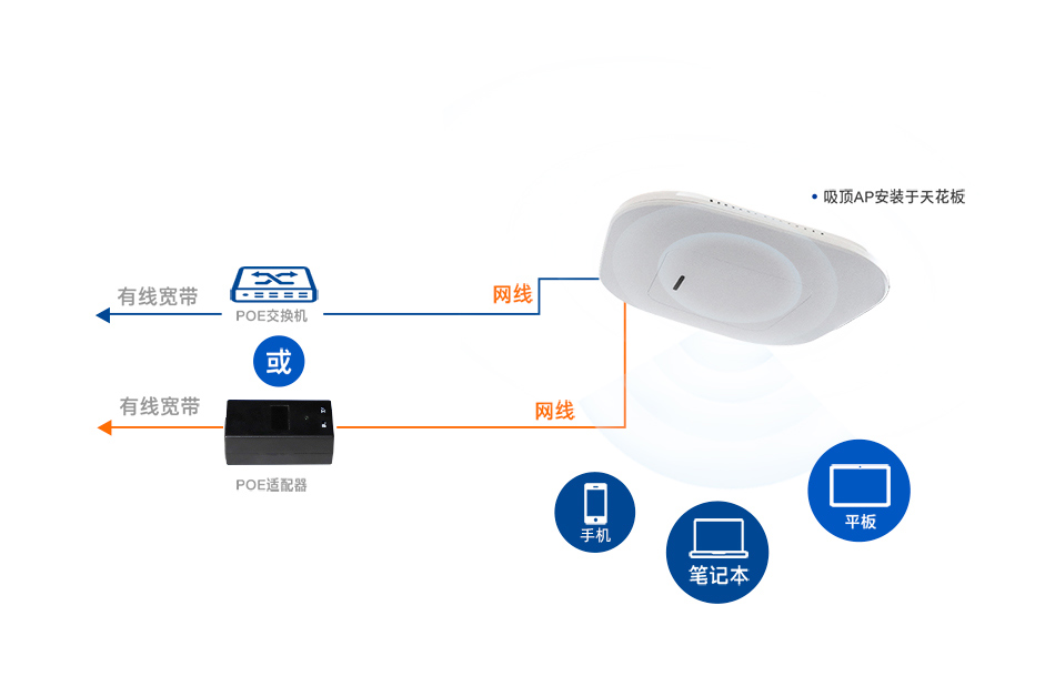 - 強(qiáng)化無線信號覆蓋:吸頂安裝的方式更有利于擴(kuò)大 WiFi 的覆蓋范圍