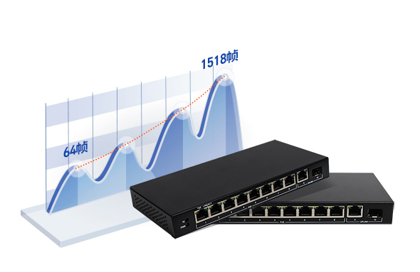 全線速轉(zhuǎn)發(fā) 所有端口均支持線速轉(zhuǎn)發(fā),64~1518 幀長均可達到線速。