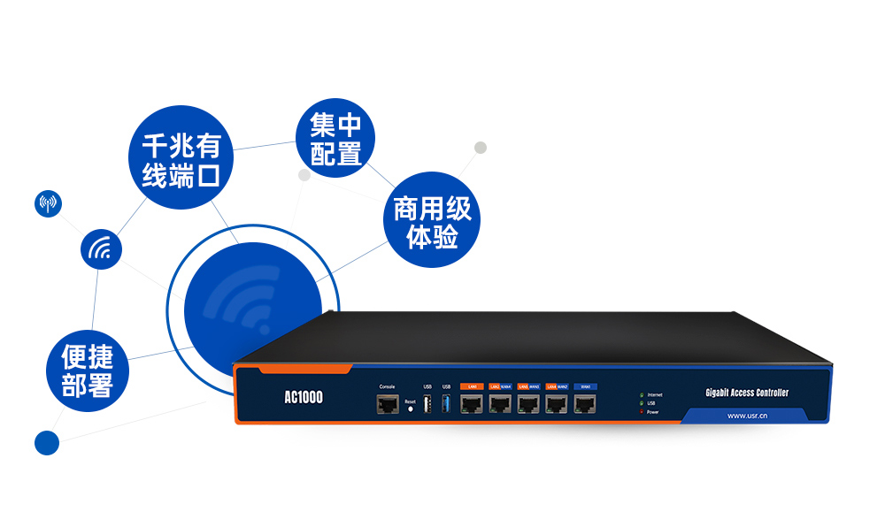 AC1000 | 無(wú)線AC控制器 商用無(wú)線控制器, 集中管理無(wú)線AP, 集中管理無(wú)線用戶 AC1000系具有本地中小型局域網(wǎng)集中配置、管理和狀態(tài)監(jiān)控功能并集成有線設(shè)備統(tǒng)一管理功能的控制器。既支持AC功能,如無(wú)線AP管理、無(wú)線上網(wǎng)控制、無(wú)線認(rèn)證管理、無(wú)線安全管理,也支持網(wǎng)絡(luò)集中控制功能,如整網(wǎng)智能開(kāi)局、全網(wǎng)集中管理、設(shè)備自動(dòng)發(fā)現(xiàn)和網(wǎng)絡(luò)運(yùn)維等。產(chǎn)品的WAN口、LAN口均采用千兆有線端口設(shè)計(jì),相比傳統(tǒng)百兆端口,有線傳輸速率提高十倍,適合100M以上的光纖寬帶接入,能夠滿足國(guó)內(nèi)主流的光纖接入帶寬。
