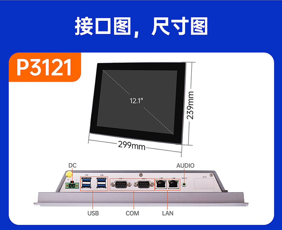 12.1”XGA TFT,十點(diǎn)電容式觸摸(可選電阻屏)