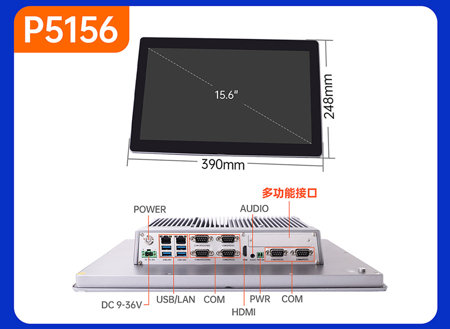 15.6”XGA TFT,十點(diǎn)電容式觸摸(可選電阻屏)