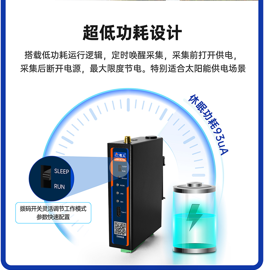 高功耗模式:采集間隔<5min,設(shè)備自動進入高功耗模式 低功耗模式:采集間隔 ≥ 5min,設(shè)備自動進入低功耗模式