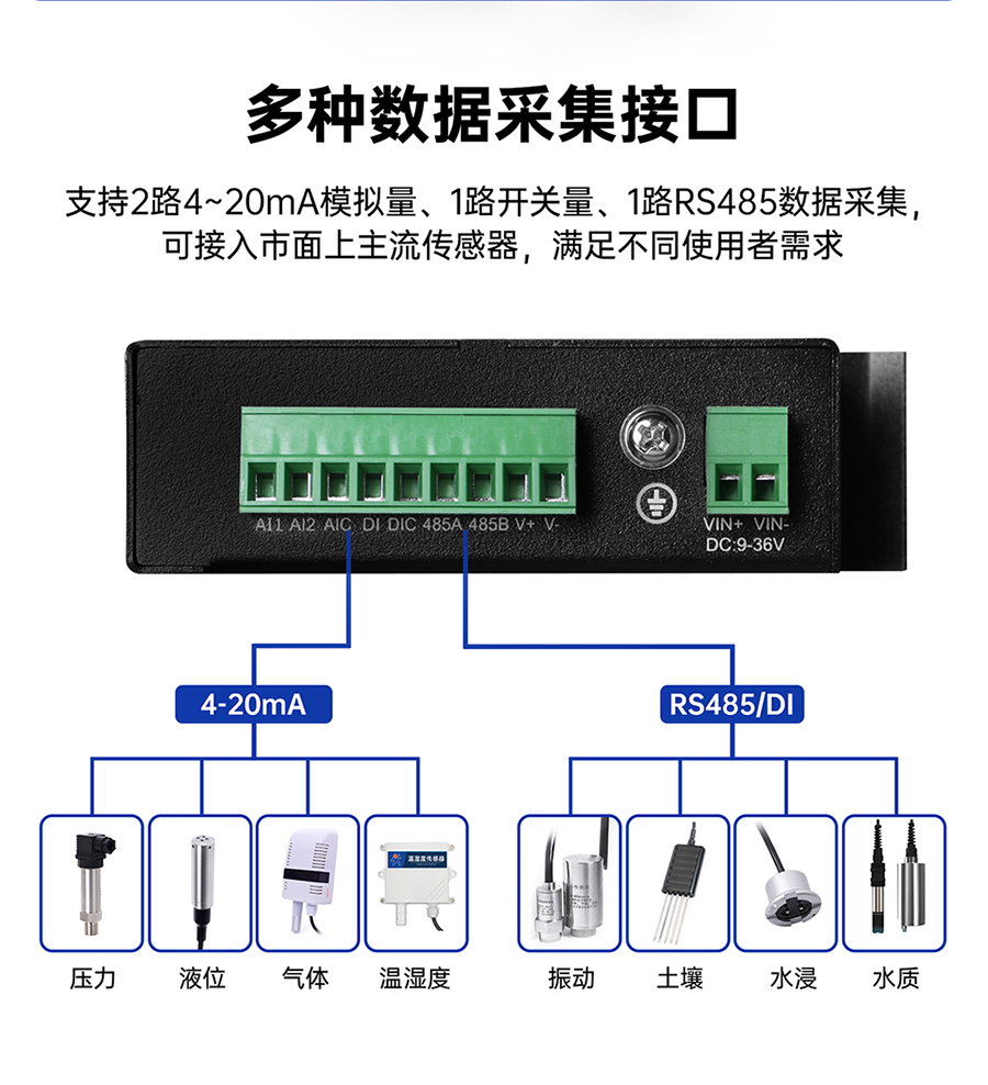 支持DI輸入采集,DI、COM端子