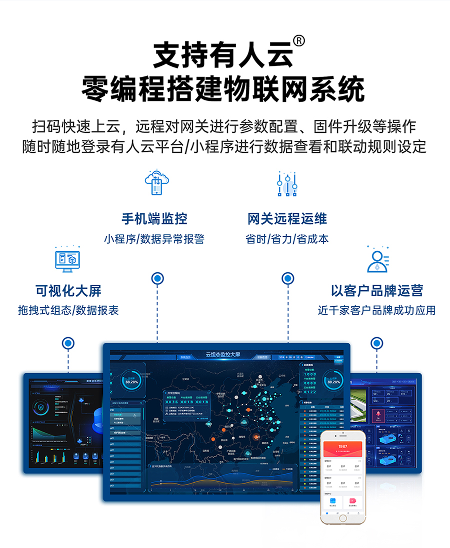 支持有人云上報、支持TCP、MQTT通道JSON格式上報