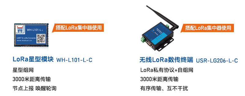 WH-L101-L-C是LoRa星型模塊,USR-LG206-L-C是LoRa數(shù)傳終端,二者搭配LoRa集中器使用,用戶可根據(jù)實(shí)際需求自選。