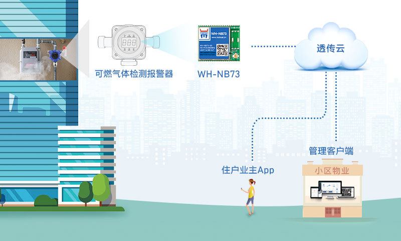 本案例中,用戶對傳統(tǒng)的聲、光報(bào)警器進(jìn)行升級(jí)改造,結(jié)合有人NB模組及透傳云平臺(tái),對燃?xì)庑孤╇U(xiǎn)情進(jìn)行預(yù)警數(shù)據(jù)的聯(lián)網(wǎng)傳輸。