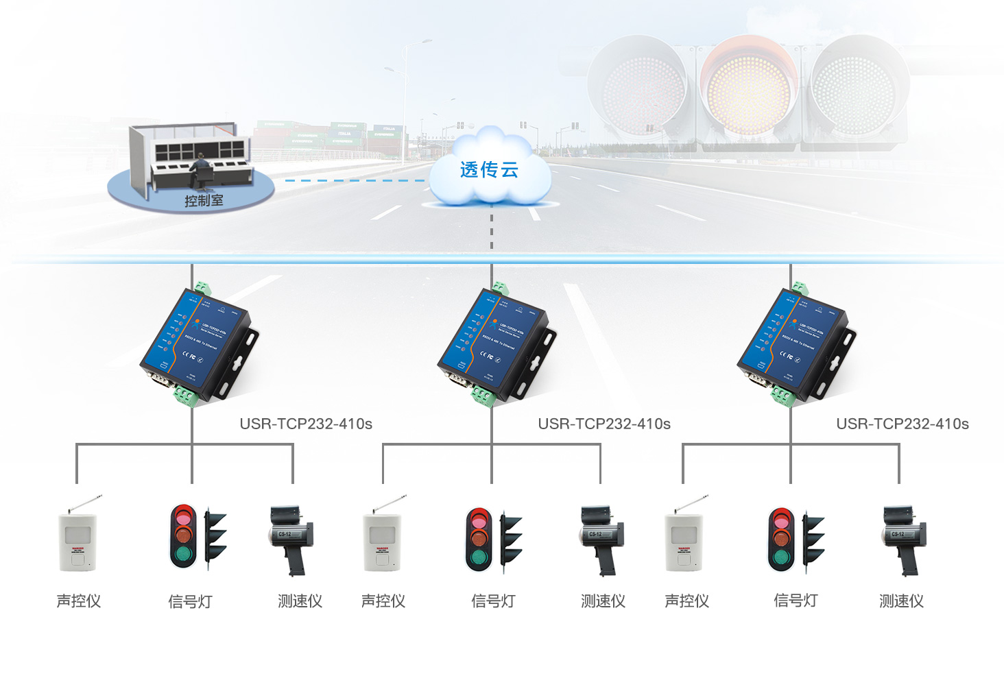 3、網(wǎng)絡(luò)數(shù)據(jù)經(jīng)由透傳云上報服務(wù)器,方便控制室監(jiān)管人員隨時查看交通路況,并根據(jù)需要遠程控制信號燈明滅切換