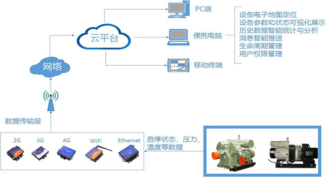 其消耗的電能以及維護使用成本都比較高。一方面,如因操作不當(dāng)?shù)仍虬l(fā)生故障時,不能及時維修,長時間停機將給客戶帶來巨大損失;另一方面,空氣壓縮機是工業(yè)設(shè)備中耗電最多的設(shè)備之一,如何通過運行和維護服務(wù),及時調(diào)整機器運行方式,降低能耗是企業(yè)關(guān)注的焦點,對此,傳統(tǒng)的監(jiān)控方式已經(jīng)不能滿足客戶的需求。
