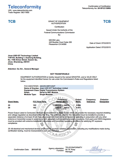 WIFI串口服務(wù)器 FCC 認(rèn)證